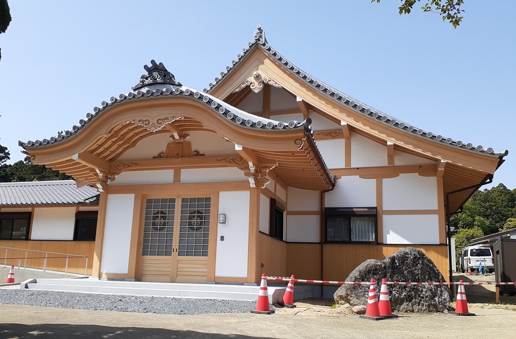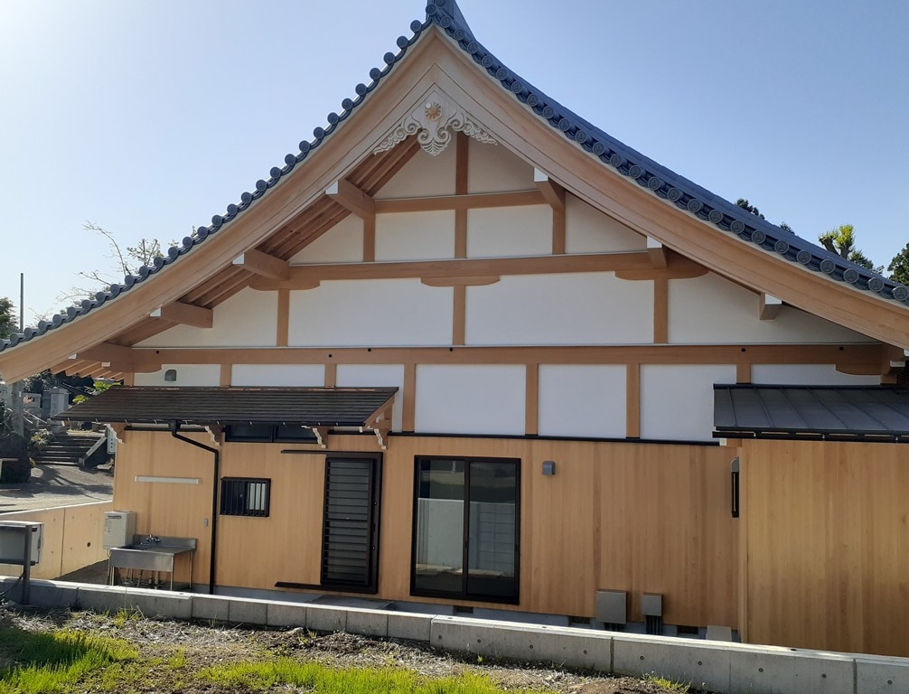 建物・大きさ | ≪本堂≫ 身舎 京間 間口7.0間×奥行7.5間 両脇1間、裏1間半の三方に庇を附す ≪会館≫ 身舎 間口 6.0間×9.0間 他 便所棟、法務員室棟含め約100坪 |