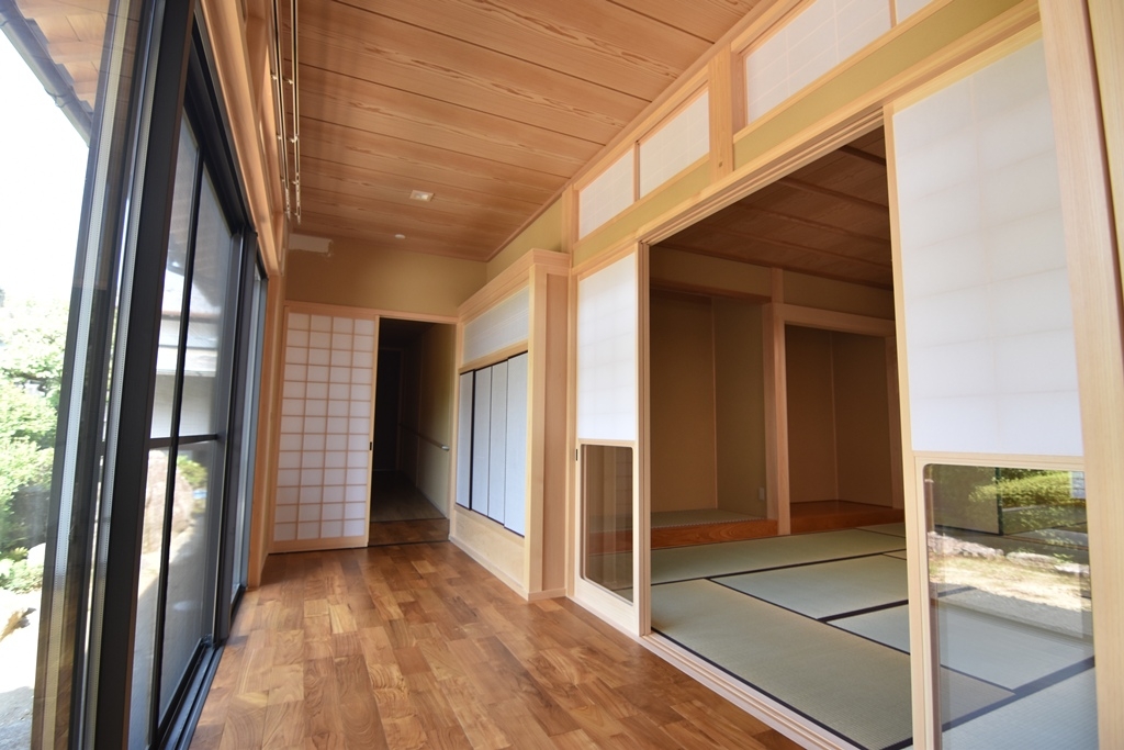 通し柱:6.0寸角、5.0角(檜),管柱:5.0寸角・4.0寸角